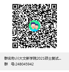 2. 复试时间为2021年3月27日—3月28日(具体复试时间将在QQ群“2021年川大文新学院硕士复试通知总群”中告知)。