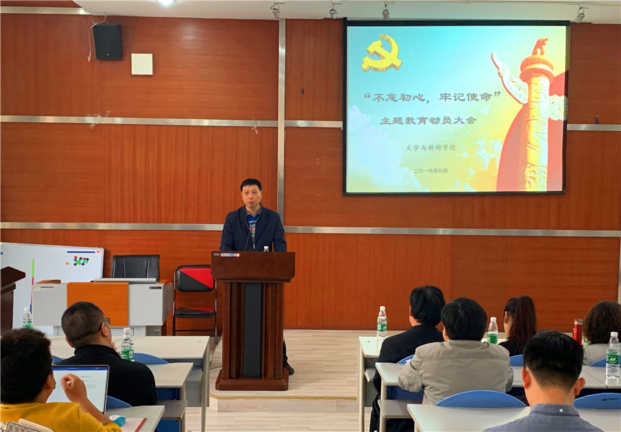 9月19日下午,w88win体育官网“不忘初心、牢记使命”主题教育动员大会在望江校区文科楼二楼阶梯教室召开。学校第八指导组组长、校机关党委专职副书记兼纪委书记韩杰同志出席会议并讲话。学校第八指导组成员、校长办公室副主任吴刚、校工会副主席冷泠以及指导组其他成员到会指导。