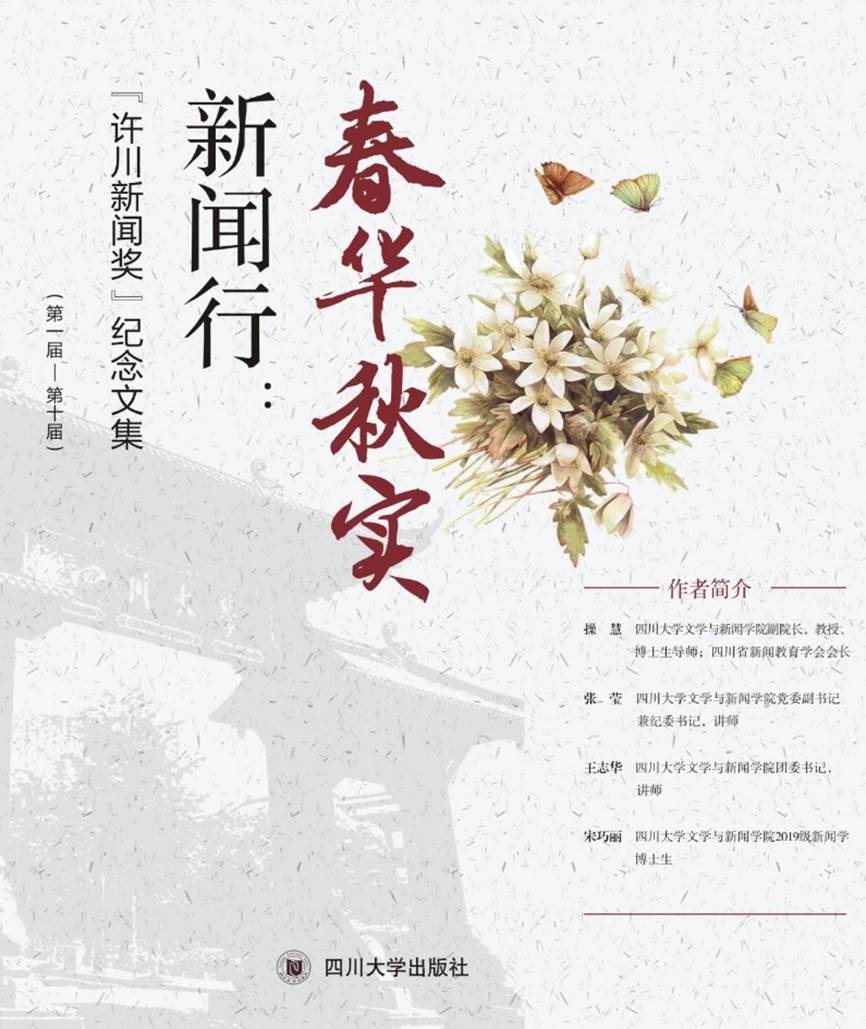 2020年4月,w88win体育官网编著的《春华秋实新闻行:“许川新闻奖”纪念文集(第一届—第十届)》正式出版。书中汇集收录了2008-2019年间十届“许川新闻奖”的获奖名单和部分获奖者作品;同时收录了奖学金设立者许晓舟先生和新闻学业界专家、学者的访谈,以此勾勒“许川新闻奖”的发展历程,展陈了学院人才培养和学生实习实践的阶段性成果,以期探寻学科建设、产学研深度互动的创新路径和未来方向。该文集以“十届”为契机,梳理总结经验,唤起交流对话。