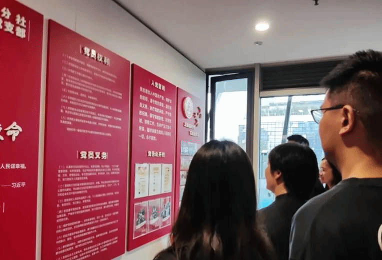 师生阅看新华社四川分社党建工作墙