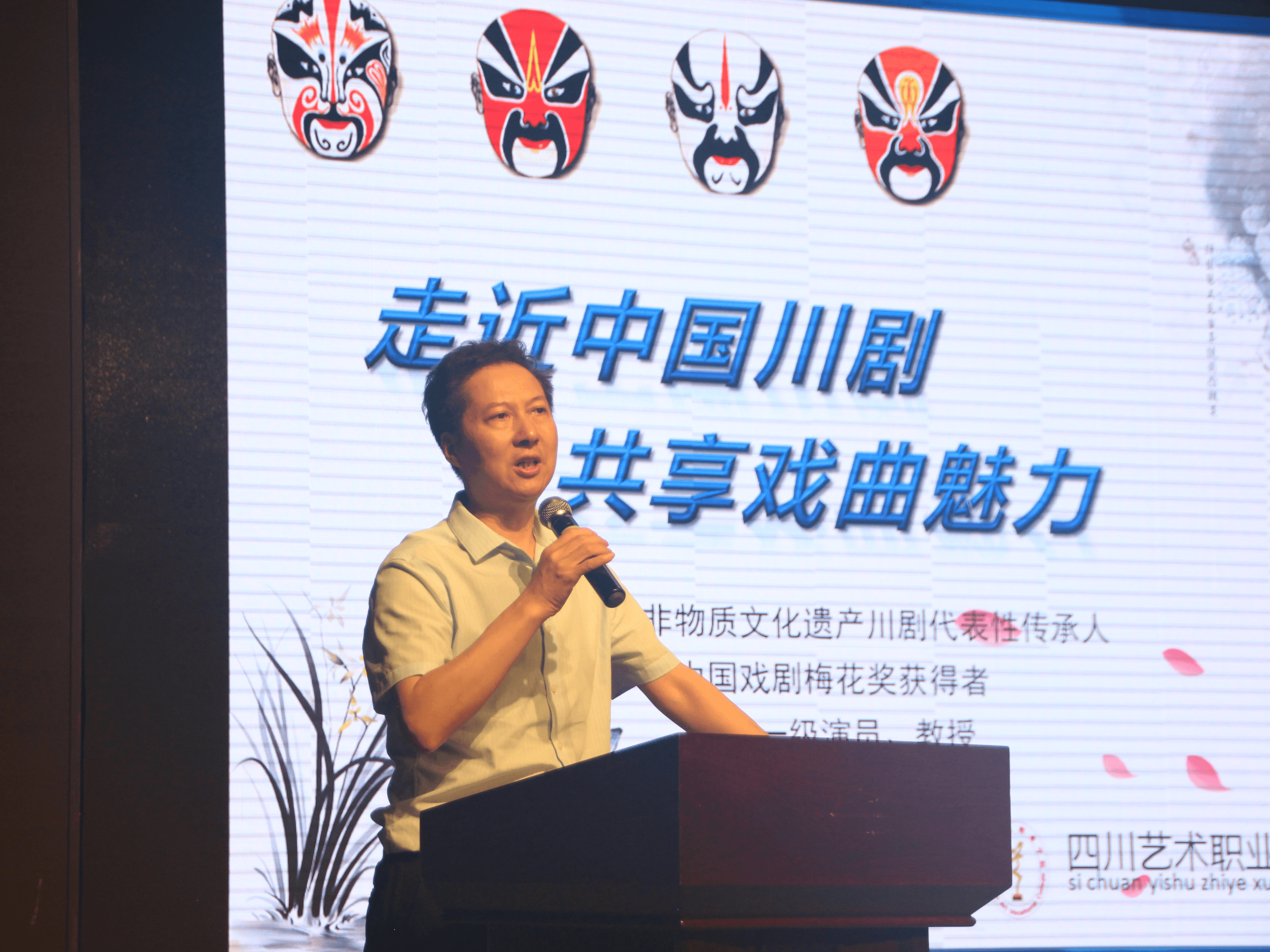 肖德美教授以《走近中国川剧,共享戏曲魅力》为题开始专题演讲。他强调,川剧不仅需要传承,也需要传播。此次讲座内容涉及川剧历史、川剧行当、川剧声腔、川剧四功五法等方面。肖德美教授一边讲解一边示范,将川剧知识和示范性表演有机结合起来,使观众更易于理解和接受。