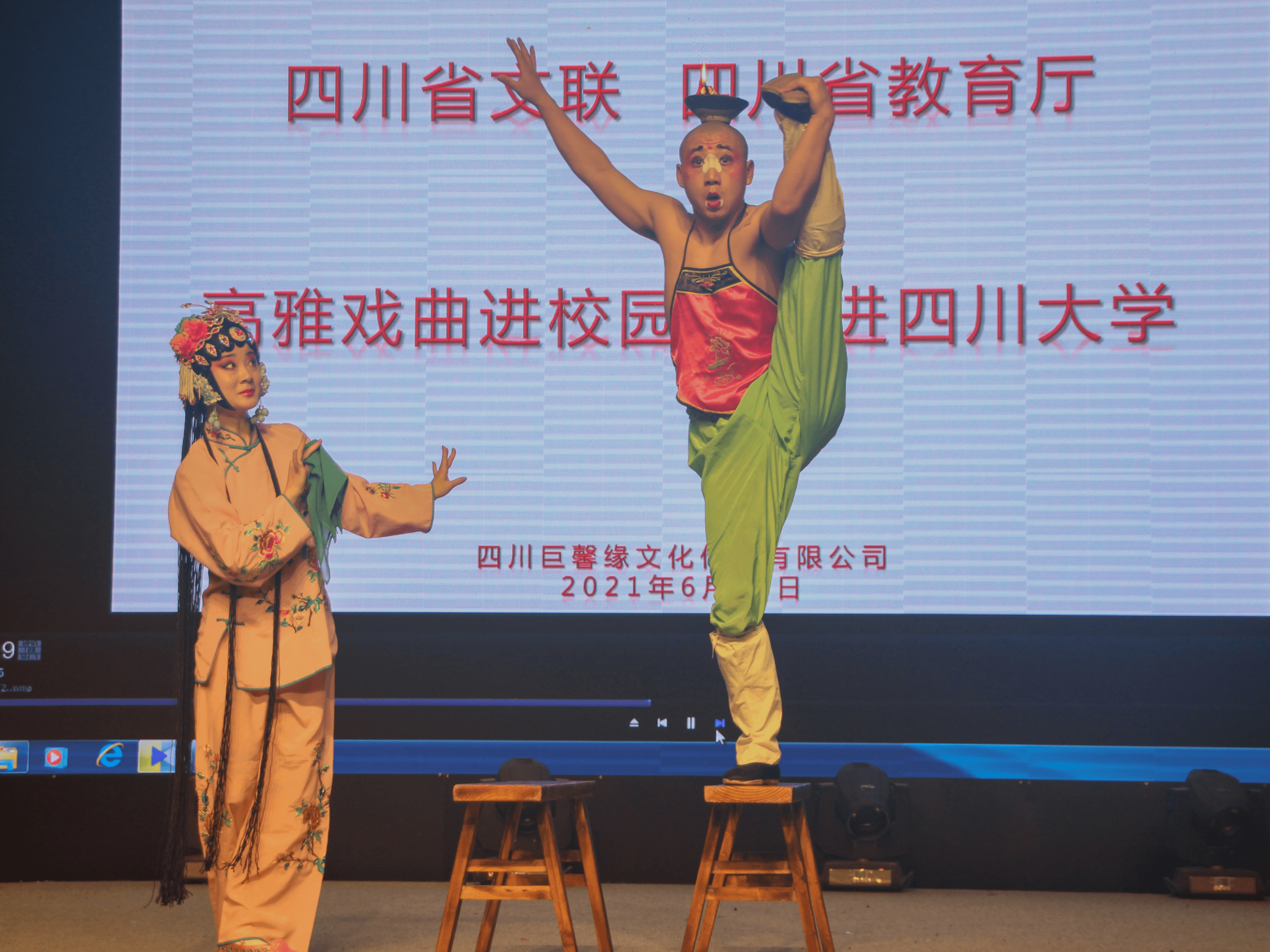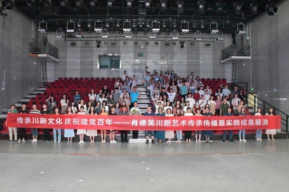 2021年6月15日下午2:30,国家级非物质文化遗产川剧代表性传承人、中国戏剧“梅花奖”获得者、国家一级演员、四川省川剧理论研究会副会长、四川艺术职业学院二级教授肖德美应邀在江安校区文科楼演播厅举行《传承川剧文化,庆祝建党百年——肖德美川剧艺术传承传播暨实践成果展演》w88win中文手机版专场,w88win体育官网丁淑梅教授主持。作为国家级非物质文化遗产川剧代表性传承人,肖德美教授不仅数次赴境外演出,而且以讲座+示范+展演的传播形式在多所大中小学、基层社区举办一百余场讲座展演,让戏曲走近年轻人的身边。