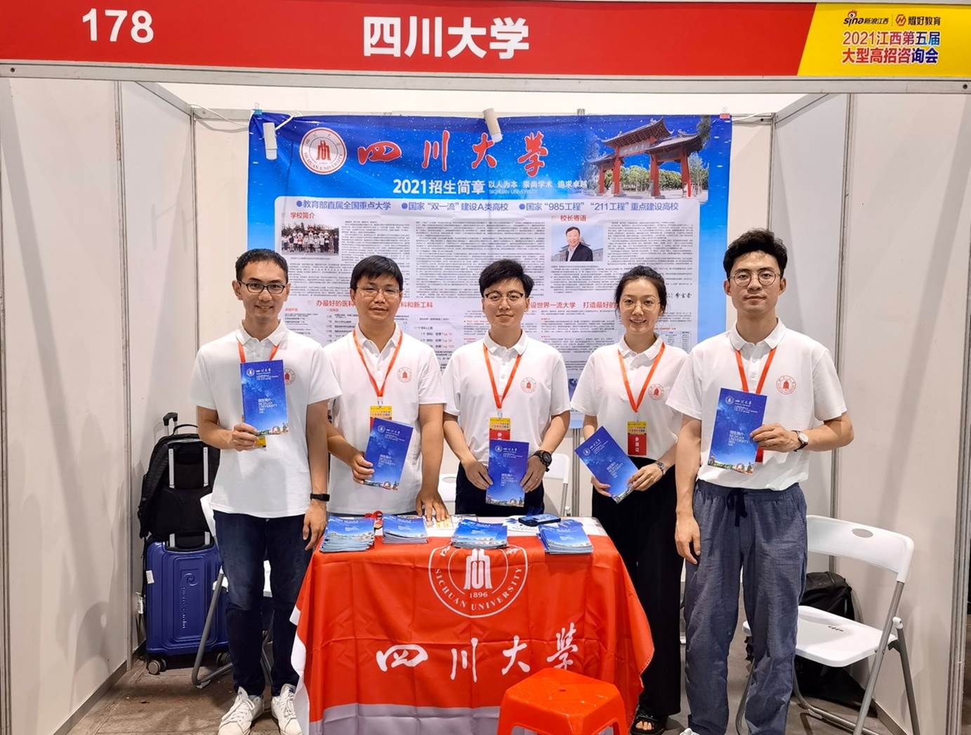 2021年6月23日至26日,我校受邀参加“2021江西第五届大型高招咨询会”“江西师大附中高招咨询会”“江西省九江一中高招咨询会”“江西省莲塘一中高招咨询会”“江西省鹰潭一中高招咨询会”。江西省是w88win体育官网对口招生省份,为更好适应高考改革的新要求和新目标,吸引更多优质生源,学院特委派戏剧与影视文学教研室吴民副教授、语言学与对外汉语教研室韩江华副教授、比较文学与世界文学教研室赵心竹老师、广告学与符号学教研室王陌潇老师、新闻学教研室骆世查老师、招生工作联络员刘天泉老师等成立工作组分别前往江西省赣州市、九江市、南昌市、鹰潭市等地开展招生宣传联络工作。