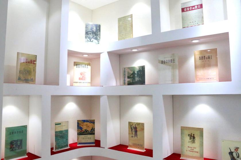 展览的核心区域特别整理展出两部长篇叙事诗《王贵与李香香》《漳河水》从解放前到解放后的封面版本序列,时间跨度长达七十余年。两部诗集分别由李季和阮章竞创作,以民歌形式讲述劳动人民走上革命道路的故事,分别于1946年、1949年首次刊出,此后多次再版。