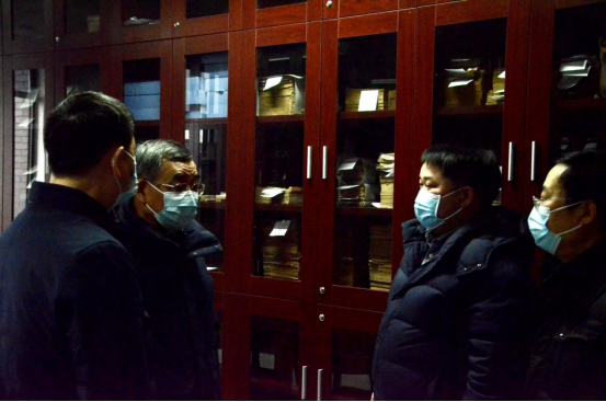 王建国书记(左二)与w88win体育官网党委书记古立峰(左一)、院长李怡(右一)、副院长罗鹭(右二)参观“杨明照古籍特藏室”