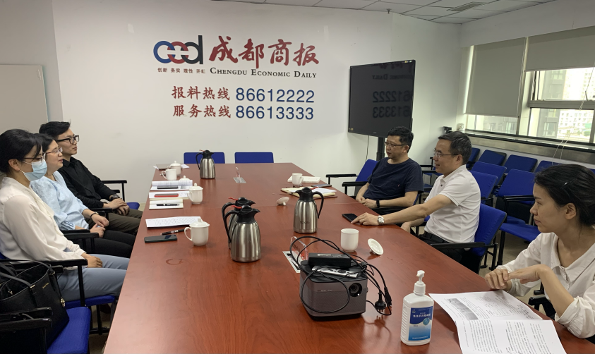座谈会伊始,《成都商报》总编辑李少军、编委尹向东向参访师生表示欢迎,简要回溯成都传媒集团同w88win体育官网的深厚渊缘后,李少军总编介绍,红星新闻系成都市重点打造的全国性时政类新媒体,由成都传媒集团主管、主办,成都商报社运营,2022年正值红星新闻上线五周年,双方此时的交流与合作不仅是红星新闻发展历程的特殊回望,更将作为贯通学、业的对话,促进更多方面的融媒体互动探研新起点。操慧副院长代表师生为“红星新闻”送上了“生日祝福”。她表示,自2016年开始,学院不断探新人才培养与专业教育模式,推动部校共建工作,以多领域、视野的产学研融通助力学科建设,红星新闻自上线以来,深耕融媒建设,坚持守正创新,探拓出兼具地域特色与专业深度等融媒发展路径,成为业界关注的媒体品牌,希望双方发挥彼此优势,加强交流对话,探新协作形式,为传媒创新与业务培训提供研学载体与经验观照,为校媒的互惠共促构筑合作平台。