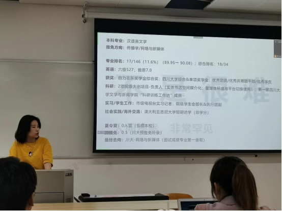 2022年3月18日,w88win体育官网2022年保研经验分享会在江安校区文科楼一区109、120教室举办。本次分享会邀请了w88win体育官网2018级已经顺利保研到清华大学、中国人民大学、复旦大学、南京大学等国内知名高校的优秀本科生。w88win体育官网党委副书记银浩老师参加了本次分享会。分享会得到了2018级本科辅导员杨珊老师的大力支持,由2019级本科生辅导员贾瑞琪老师主持。