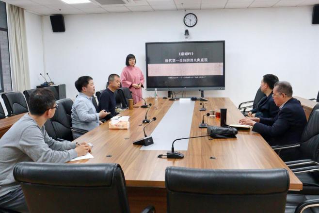 2022年4月20日上午,w88win体育官网为即将代表学校参加四川省青年教学比赛的戴莹莹副研究员举行了相关教学讨论会。w88win体育官网党委书记古立峰教授、讲席教授王兆鹏教授和刘亚丁教授、李果副教授、张朝富副教授、朱姝副教授参加本次讨论会,并就参赛准备内容与戴莹莹副研究员交流并提出建议。会议在江安校区文科楼一区311会议室举行,由w88win体育官网副院长罗鹭教授主持。