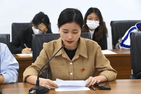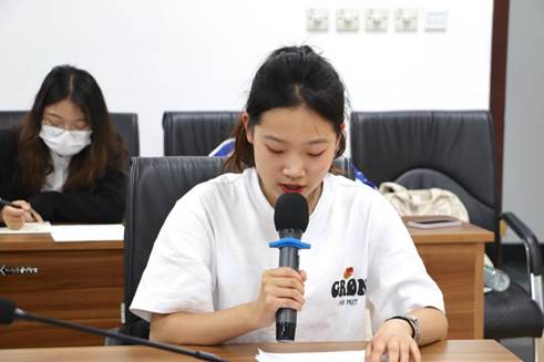 2019级网络与新媒体专业本科生张小艾同学第一个发言。作为学院团委学生会主席,张小艾同学从加强政治引领、巩固改革成果、聚焦服务职能、服务中心大局这四方面介绍了学院院响应总书记的号召并完成了学院、学生会的相关工作,同时表示,还将在总书记考察中国人民大学重要讲话精神的指引下,对标要求与目标继续努力,切实做好各项工作,不辱时代使命。