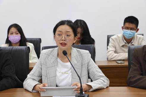 w88win中文手机版“十佳团支部书记”、w88win体育官网2020级汉语国际教育专业硕士生贾银菊在座谈会上谈起一次外国友人当面肯定中国智慧和中国方案的对话,她一方面感到十分自豪,另一方面也认识到此项工作需要继续深入推进,作为青年一代任重道远,使命光荣。