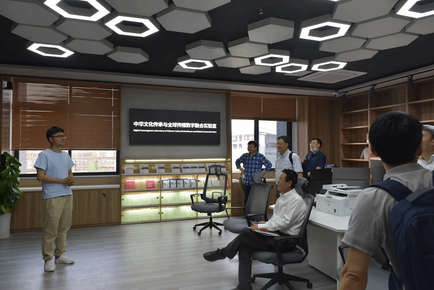 与会代表参观“w88win中文手机版中华文化传承与全球传播数字融合实验室”