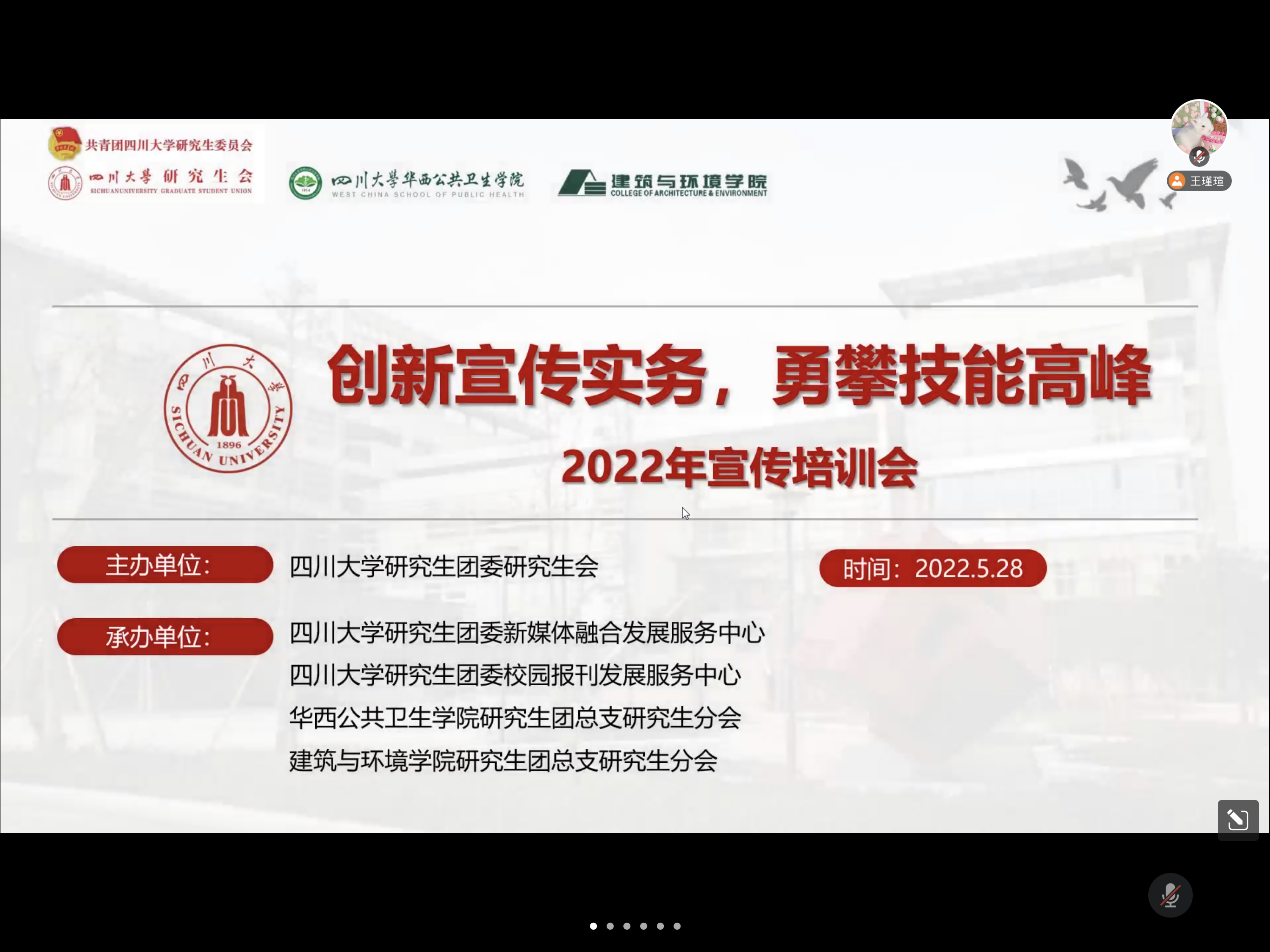 2022年5月28日下午,由w88win中文手机版研究生团委研究生会主办,w88win中文手机版研究生团委新媒体融合发展服务中心、w88win中文手机版研究生团委校园报刊发展服务中心、华西公共卫生学院研究生团总支研究生分会、建筑与环境学院研究生团总支研究生会联合承办的“创新宣传实务,勇攀技能高峰——2022学年宣传培训会”召开,会议对w88win中文手机版校园宣传工作进行了培训与总结。