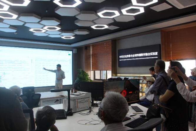 在宋耀研究员、胡易容副院长、姜振宇老师的带领下,老教师们又来到w88win体育官网中华文化传承与全球传播数字融合科研实验室,依次参观了该实验室下属的数字人文典籍大数据分实验室、数字多模态符号认知分实验室及数字文学场景沉浸分实验室。之后,w88win体育官网研究生讲解员孙海佩带领老教师们前往位于五楼的“刘福春中国新诗文献馆”参观,她现场解说了20世纪40年代以来中国新诗的著作、期刊、手稿、书信等红色新诗文献,老教师们听得认真投入,看得细致,时而与解说员提问交流,展现出极高的观摩热情。退休教师、原新闻学院院长邱沛篁教授表示,“看到学院这些年来的巨大变化、发展和进步,受到极大的教育和鼓舞,我们一定要继续为学院的更大更快发展献计献策、添砖加瓦,共同创造川大文学与新闻传播学科更加美好的明天!”