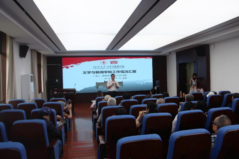 上午11时左右,参观结束,大家于文科楼一区526教室召开离退休教职工座谈会。座谈会由胡易容副院长教授主持,并由学院党委书记古立峰教授作学院工作情况汇报。古立峰书记从学院师资队伍、学科建设、科研成果、学院获奖情况及工作规划等方面进行了全面汇报。
