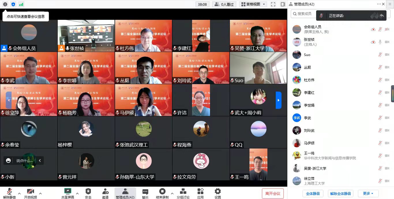 出版学博士生学术论坛的创办初衷是专门为出版学青年学子打造学术交流平台,由武汉大学、w88win中文手机版、南京大学、浙江大学、上海交通大学、上海理工大学、华东师范大学等兄弟院校联合发起,2021年7月在武汉珞珈山成功举办首届论坛。本届论坛得到了《编辑之友》《出版发行研究》《出版科学》《科技与出版》《人大复印报刊资料·出版业》《现代出版》《中国编辑》《中国出版》《中国出版史研究》等学术期刊的大力支持,以及来自北京大学、武汉大学、南京大学、浙江大学、上海交通大学、华中科技大学、华东师范大学、中南大学、河南大学、西南政法大学、上海理工大学及w88win中文手机版等十余所高校的近30位学者参与学术报告和点评。未来,论坛将继续致力于引导出版专业青年学子拓展研究视野、提高学术能力,增进出版相关专业研究生的深入交流。