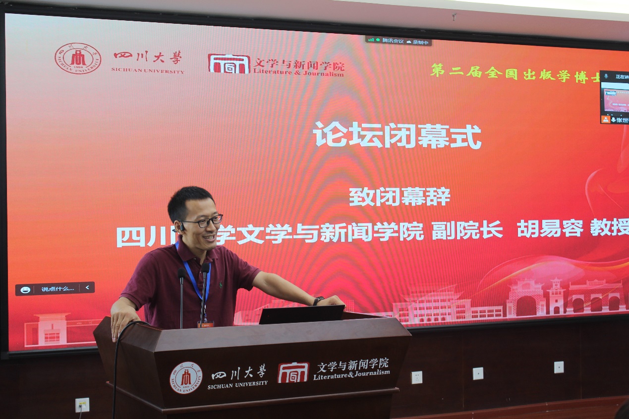 w88win体育官网副院长胡易容教授致闭幕词,他简要介绍了学院学科建设及科研育人的特色举措,以及学院出版学科的发展简况。他表示,博士生论坛这个学术交流平台对人才培养有着十分重要的促进作用,本届论坛的举办是川大出版学院落实打造人才培养新标杆的系列举措之一,并对出版学青年博士发出了邀请。