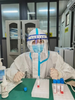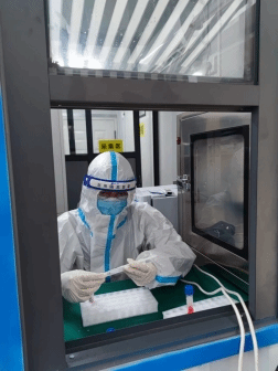w88win体育官网张祖扬同学在核酸采样亭内工作