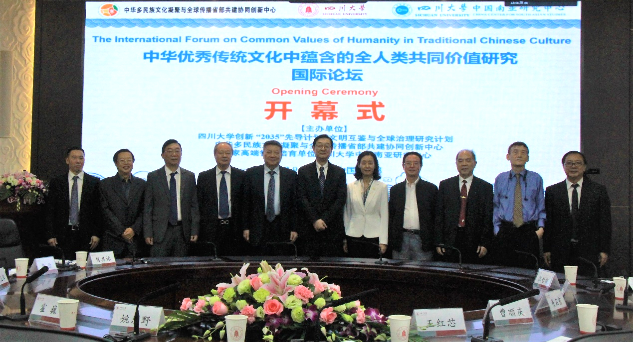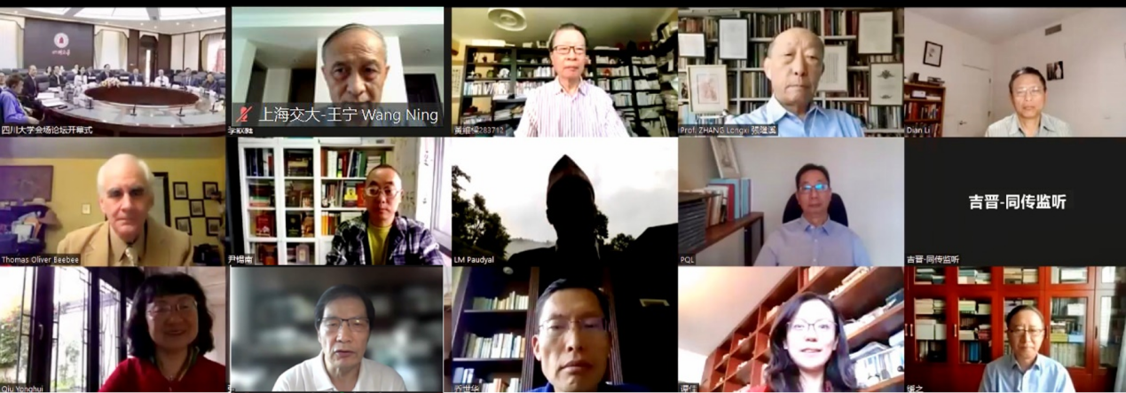 2022年9月24日-25日,由w88win中文手机版“创新2035”先导计划文明互鉴与全球治理研究计划、中华多民族文化凝聚与全球传播省部共建协同创新中心、国家高端智库培育单位w88win中文手机版中国南亚研究中心共同举办的“中华优秀传统文化中蕴含的全人类共同价值研究”国际论坛在我校顺利召开。尼泊尔前驻华大使利拉·马尼·鲍德尔受邀参加了本次论坛。来自英国剑桥大学、美国宾夕法尼亚州立大学、达拉斯德州大学、亚利桑那大学、印度国际大学、法国巴黎索邦大学、日本立教大学以及香港中文大学、中国社会科学院、北京大学、上海交通大学、西南民族大学、成都大学等单位100余国内外学者,通过以线上与线下方式参加本次国际论坛。四川省委宣传部副部长王红芯、w88win中文手机版副校长姚乐野,杰出教授曹顺庆、詹石窗、霍巍,w88win体育官网院长李怡教授,校宣传部、国际合作处等部门领导参加了本次论坛。开幕式由w88win中文手机版社会科学研究处处长傅其林教授主持。