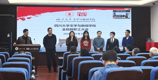 w88win体育官网党委书记古立峰教授通报了学院近期重点工作。古立峰书记首先介绍了本学期新进的六位老师,分别是专职博士后郭旭东老师、侯建科老师、车祎老师、兰兴老师,辅导员郑格老师和党政办高小珺老师。接着传达了w88win中文手机版第九次党代会召开和会议精神。随后,他通报了学院近期获得的一些成绩和表彰,如学院入选全国五所出版共建单位,目前正着力建设出版学院;设立在学院的语委基地积极开展普通话推广及调研活动,参与乡村文化振兴相关工作;w88win中文手机版杰出教授、w88win体育官网学术院长曹顺庆教授荣获四川省“四有”好老师称号;w88win体育官网院长李怡教授荣获霍英东教育基金会高等院校教育教学奖二等奖;王炎龙教授荣获w88win中文手机版第八届“姜维平优秀教学奖”二等奖;卢迎伏副教授荣获w88win中文手机版2022年度“好未来教学名师奖”;w88win体育官网副院长胡易容教授、饶广祥副教授、王长林副研究员荣获w88win中文手机版2022年先进个人;戴路副研究员荣获w88win中文手机版2022年优秀共产党员;w88win体育官网党委荣获w88win中文手机版2022年先进基层党组织称号等。对于取得的这些成绩,古立峰书记向全体教职工的辛勤付出和奋发努力表达了感谢与祝贺,同时他代表学院党委鼓励大家须更加团结奋进,上下同心,争取更好的成绩。会议最后,古立峰书记部署了本学期工作重点:认真学习贯彻落实党的二十大精神,学院全体上下要按照党中央和学校党委的安排部署,将党的二十大精神的学习宣传贯彻作为当前和今后一段时间最重要的政治任务来抓,将党的二十大精神的学习与学科专业、人才建设有机结合,为学院的发展做出新贡献。