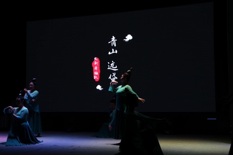 中场休息环节,w88win体育官网舞蹈队的同学表演了舞蹈《青山远黛》,青衫曼舞,以肢体与音乐将嘉宾与同学们引入更为悠远的诗境当中。