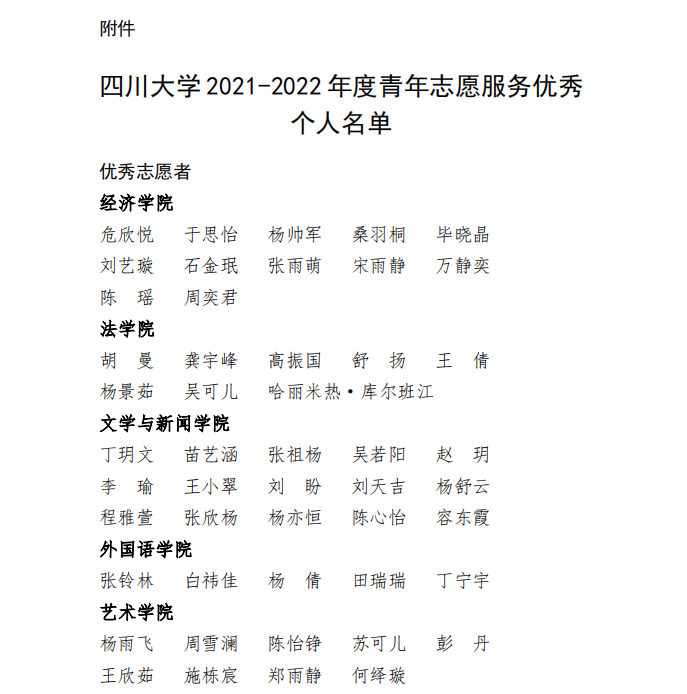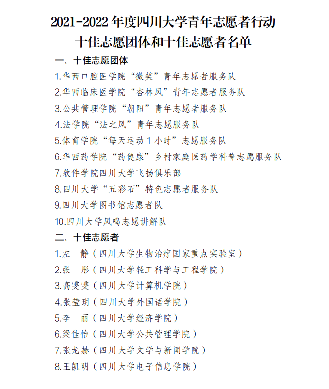 在2021-2022年度w88win中文手机版青年志愿者行动评选中,w88win体育官网本科2019级张龙赫同学获评“w88win中文手机版十佳志愿者”,丁玥文、苗艺涵、张祖杨、吴若阳、赵玥、李瑜、王小翠、刘盼、刘天吉、杨舒云、程雅萱、张欣杨、杨亦恒、陈心怡、容东霞等15位同学获评“优秀志愿者”。