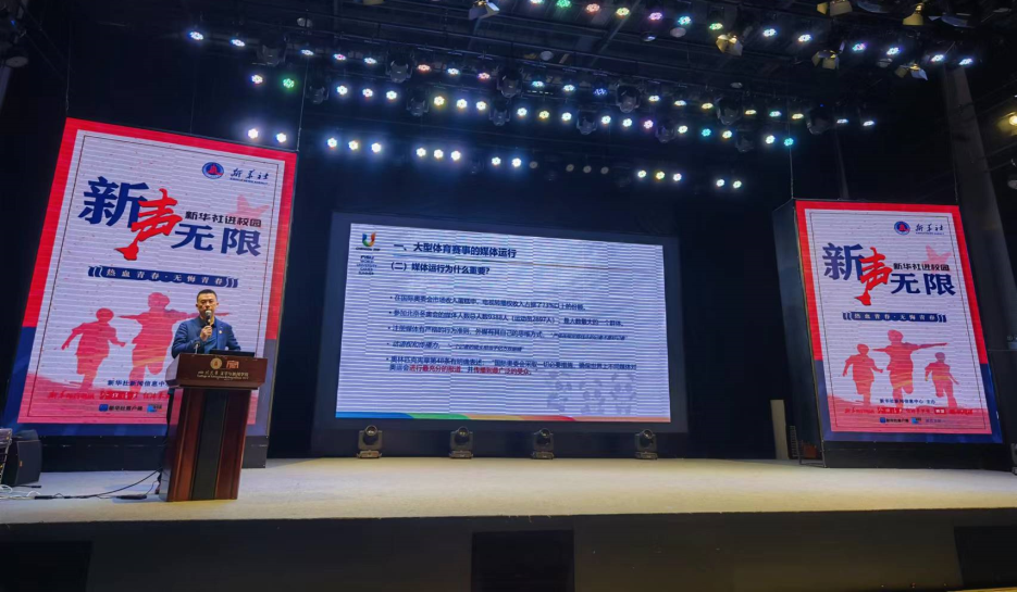 2023年5月5日,“新声无限——2023年新华社进校园”活动于w88win体育官网演播厅举行。新华社中国图片集团副总裁、党委常委、董事王湘宏以“大型赛事媒体运行及新闻宣传”为题进行讲座。该系列活动4月11日在北京举行启动仪式,此次走进w88win体育官网是新华社在四川高校开展的第一场活动。