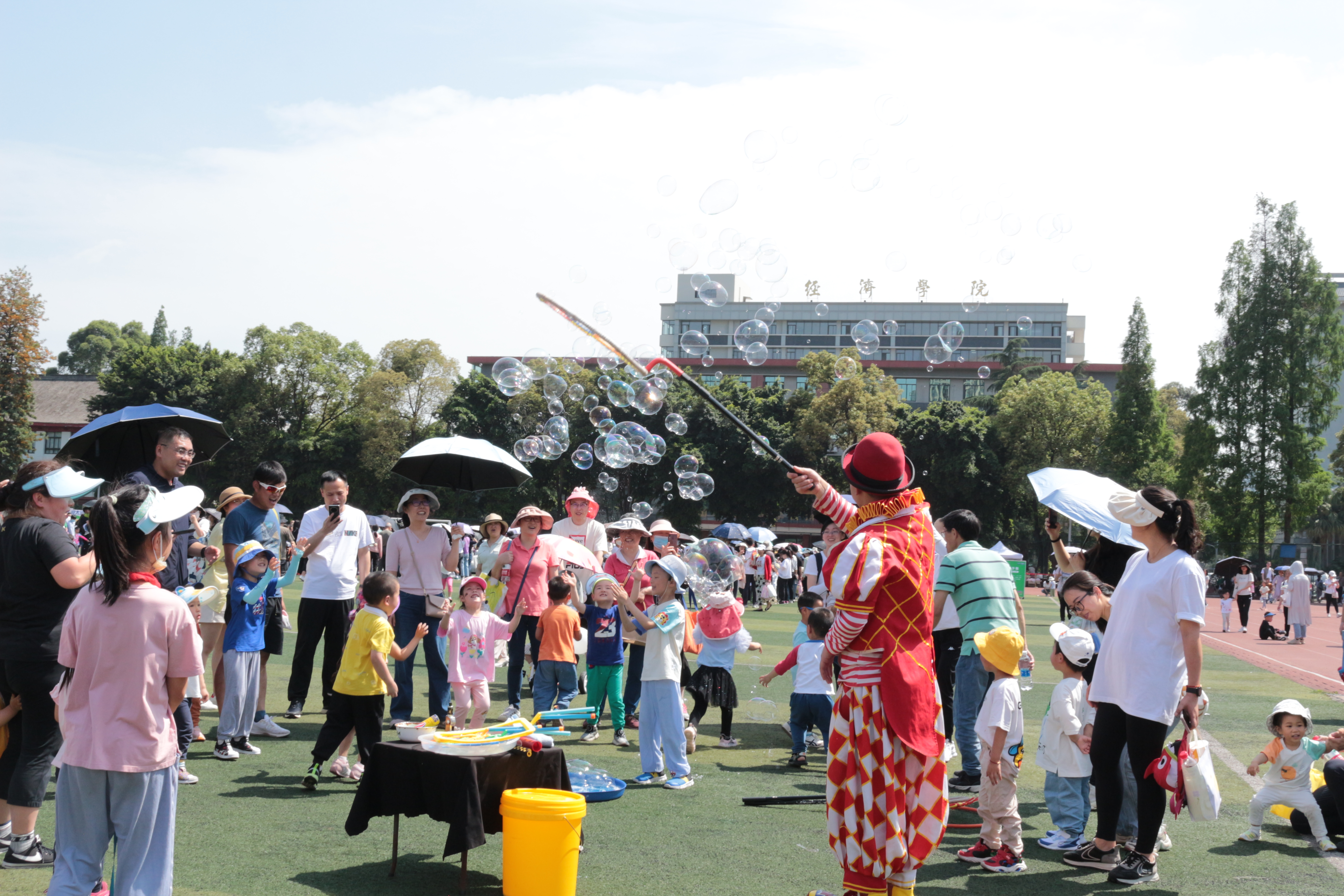 w88win体育官网积极组织教职工及其子女参与本次亲子趣味运动会。活动现场设有“雷神之锤”“丢沙包”“射箭达人”“飞行棋”“枕头大战”等多个趣味运动项目。此外,现场还为大家准备了小丑表演、泡泡秀,与蓉宝、网红青蛙、创意相框等童趣元素合影打卡的游园体验环节。教职工亲子组队参加活动获得印章还可在兑奖区域兑换精美礼品。精心设计的比赛项目激发了大家的运动热情,小朋友们和家长默契配合,努力完成各个运动项目。运动场上加油声此起彼伏,整个场地变成了欢乐的海洋、亲子的乐园,大家的脸上都洋溢着幸福欢乐的笑容。