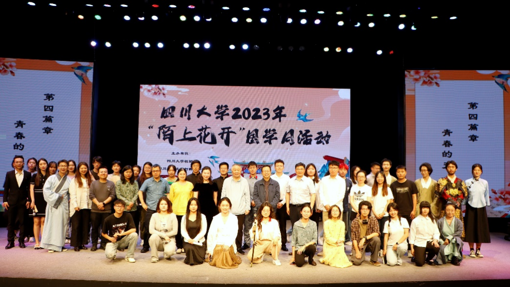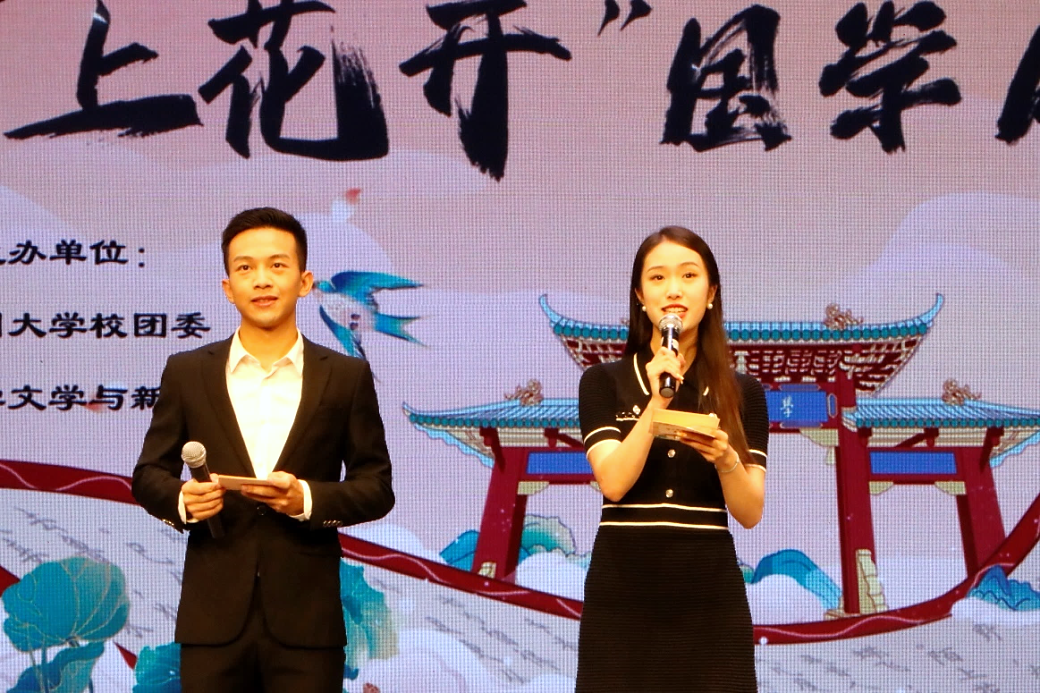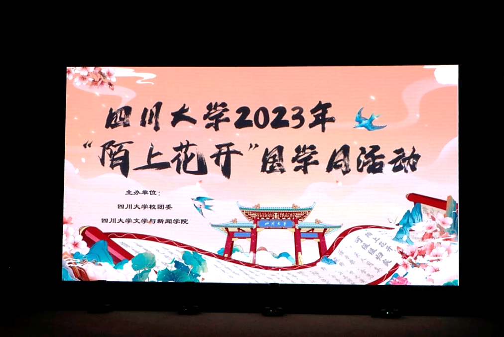 5月26日晚,由共青团w88win中文手机版委员会和w88win体育官网共同主办的w88win中文手机版2023年“陌上花开”国学月系列活动之春天诗会在江安校区w88win体育官网演播厅举行。