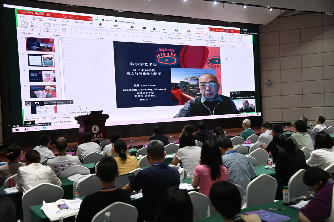 20日上午举办了大会学术报告的下半场,由苏州大学王军教授主持,南京师范大学余红兵教授评议。来自美国马凯特大学的Curtis Carter、南京大学艺术学院的赵奎英、浙江大学传媒与国际文化学院的李杰、瑞典林奈大学的Michael Ranta、意大利都灵大学的Massimo Leone和加拿大康考迪亚大学的Duan Lian采用“线上+线下”的方式分享了他们的学术报告。