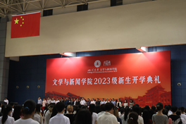 2023级新闻学硕士生张龙赫同学和2023级汉语言文学基地班本科生鲍思妤同学作为新生代表发言。张龙赫同学结合自己作为川大研究生新生、本科老生的学习生活体会进行了分享,他表示,作为一名新时代的大学生,应当在专业学习、社会实践、志愿服务中踏实苦干,在肩负时代重任时行胜于言,以实干创新成就一番事业,交出不负社会责任与使命的优异答卷;鲍思妤同学表示,作为一名文新学子,应在博览群书、求真问道之中,感受华夏文脉的源远流长与中华民族的生命伟力,厚植家国情怀,在百年未遇之大变局中体现文新人“虽千万人吾往矣”的担当,不负时代,不负韶华。