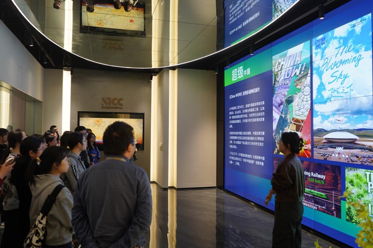 下午,同学们在老师带领下参观了四川国际传播中心、封面传媒演播室等,现场体验新闻生产流程,了解新闻在传播新格局中的创新发展和实践成果,近距离感知当下传媒发展的动态。