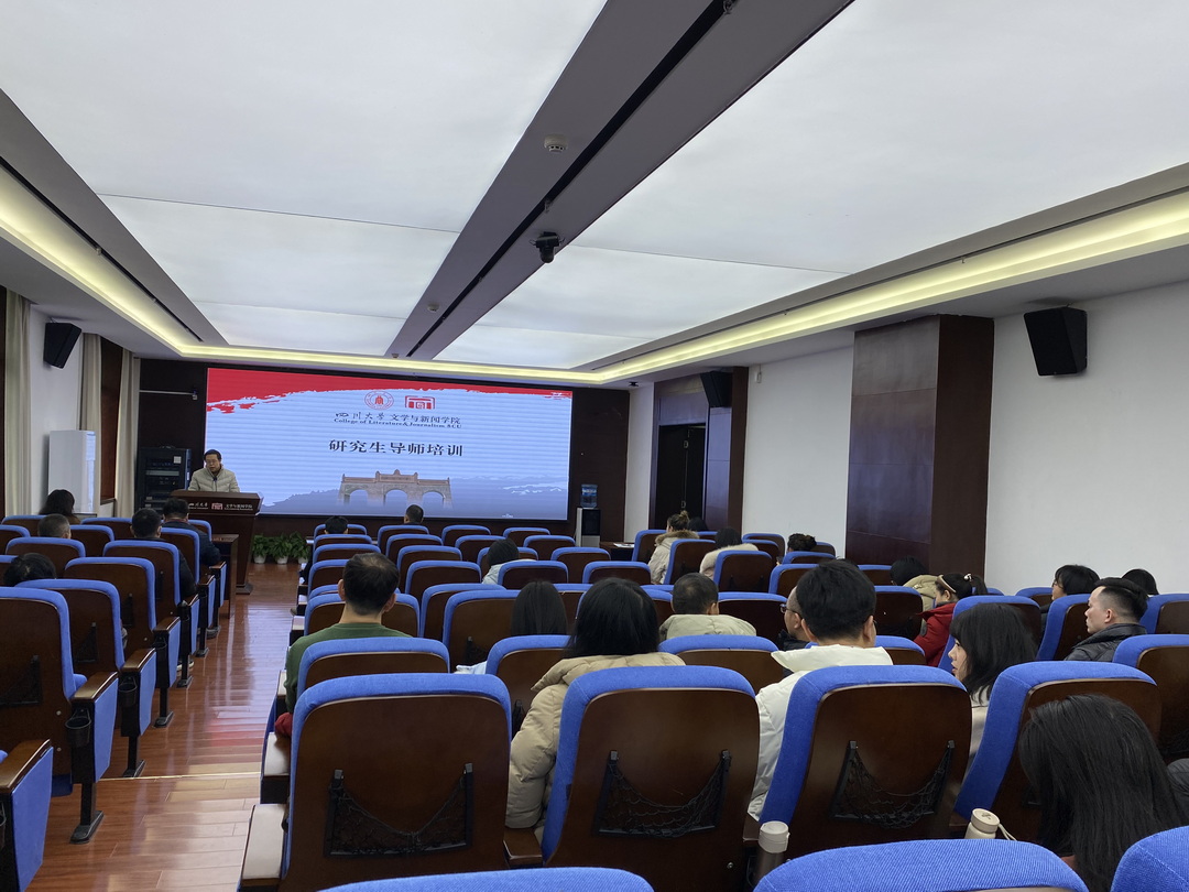 院长李怡教授首先作全院研究生导师培训。李怡院长传达了我校研究生管理规范并指出,随着研究生导师队伍的扩大与培养要求的提高,研究生导师须在培养各环节践行立德树人。他以具体案例强调研究生导师在履职中,要在学生学术规范训练中高度重视和贯穿对学生的思想教育与正确的价值观塑造。