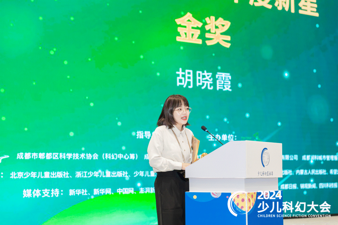 2024少儿科幻大会暨第四届少儿科幻星云奖颁奖典礼于2024年5月17日在四川成都举行。w88win体育官网校友2012级比较文学专业硕士研究生胡晓霞荣获第四届少儿科幻星云奖新星奖金奖。