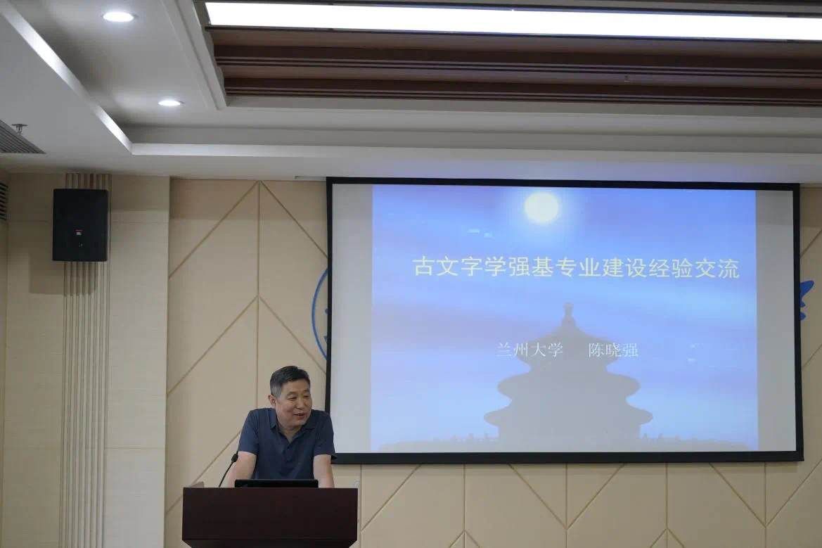 7月4日上午,师生一行前往兰州大学城关校区,与兰州大学文学院古文字学强基班师生共同开展“兰州大学-四川大学古文字学强基专业人才培养研讨会”。会上,兰州大学文学院陈晓强老师与w88win中文手机版滕胜霖老师分别就两校古文字学强基专业建设情况与学科建设特点进行了介绍。兰州大学文学院黄一村老师通过对专业课程的建设思路和授课经验进行介绍,强调了培养有基础也有能力的人才的必要性。在交流过程中,川大和兰大老师们在线上线下开展合作方面达成共识,以期提升强基计划人才培养成效。