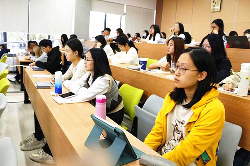 课程末尾,傅书记给新生们分享了一些实用的建议:首先,正确定位大学学习阶段,适应大学学习评价;其次,提升专业知识的功夫和学习的能力;第三,加强胸怀天下的国际视野;第四,把优秀作为一种习惯;最后,处理好身心关系,以学习为乐。同学们认真聆听、细心领会,现场多次响起热烈的掌声。