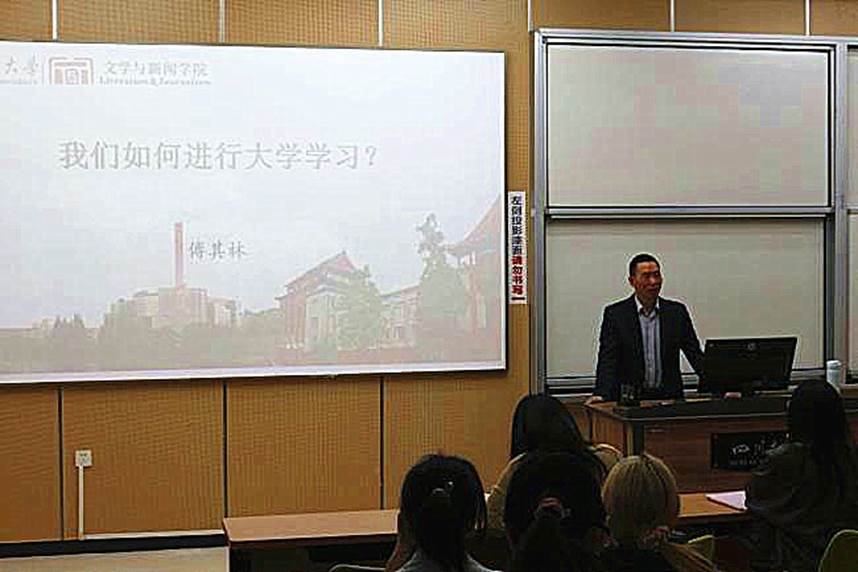 学院党委书记傅其林教授为新生们授课