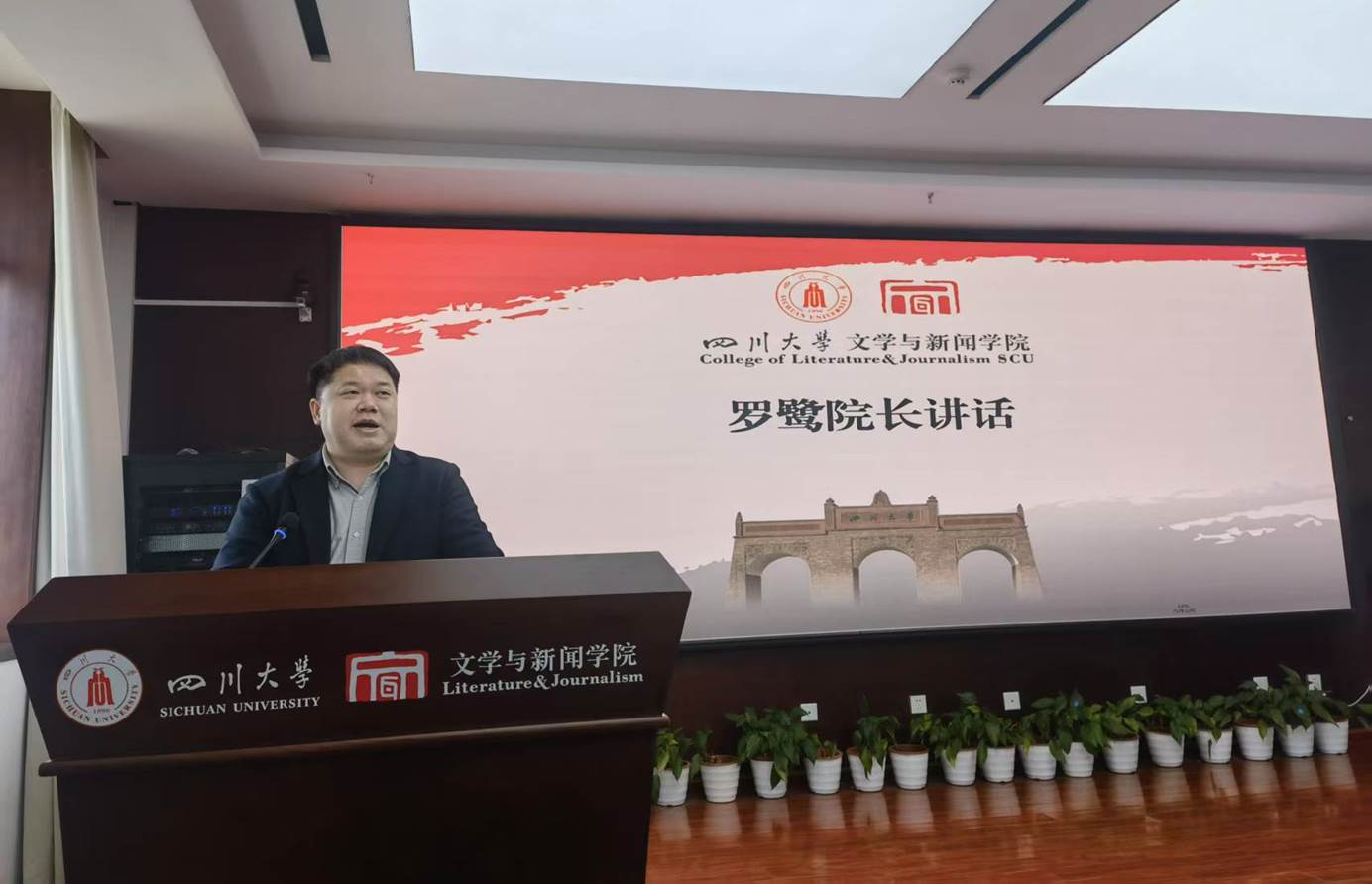 罗鹭院长发表了任职感言,特别对w88win中文手机版杰出教授、中国著名敦煌学家项楚教授表达深刻缅怀,并表示将坚决拥护学校和学院党委决策部署,积极履职尽责,团结师生,为推动学院高质量发展贡献力量。同时,根据学校新学期工作会议精神,结合w88win体育官网具体情况,对做好“十四五”规划总结和“十五五”总体谋划、学科建设、人才培养、教学科研、师资队伍建设、国际交流合作、财务管理、共建新闻学院和出版学院、学生管理等方面重点工作进行了布置。