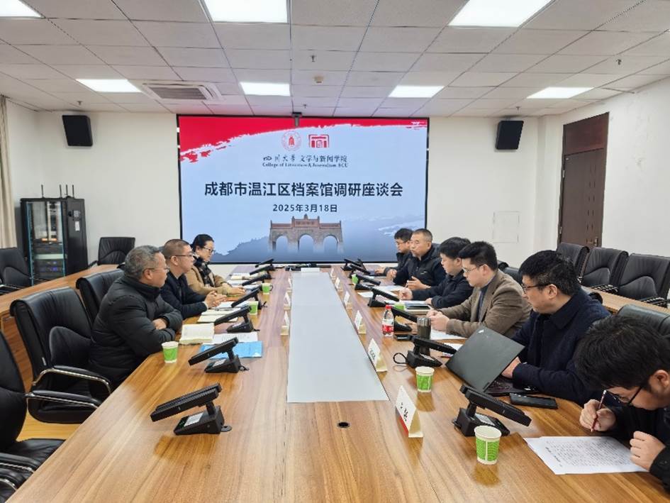 2025年3月18日下午,成都市温江区档案馆朱乐明馆长一行到访w88win体育官网交流参观,就开展深度合作进行座谈。会上,双方一致认为档案具有重要的学术价值、经济价值、社会价值,并重点围绕合作平台搭建、档案资源深度挖掘等问题进行了探讨。