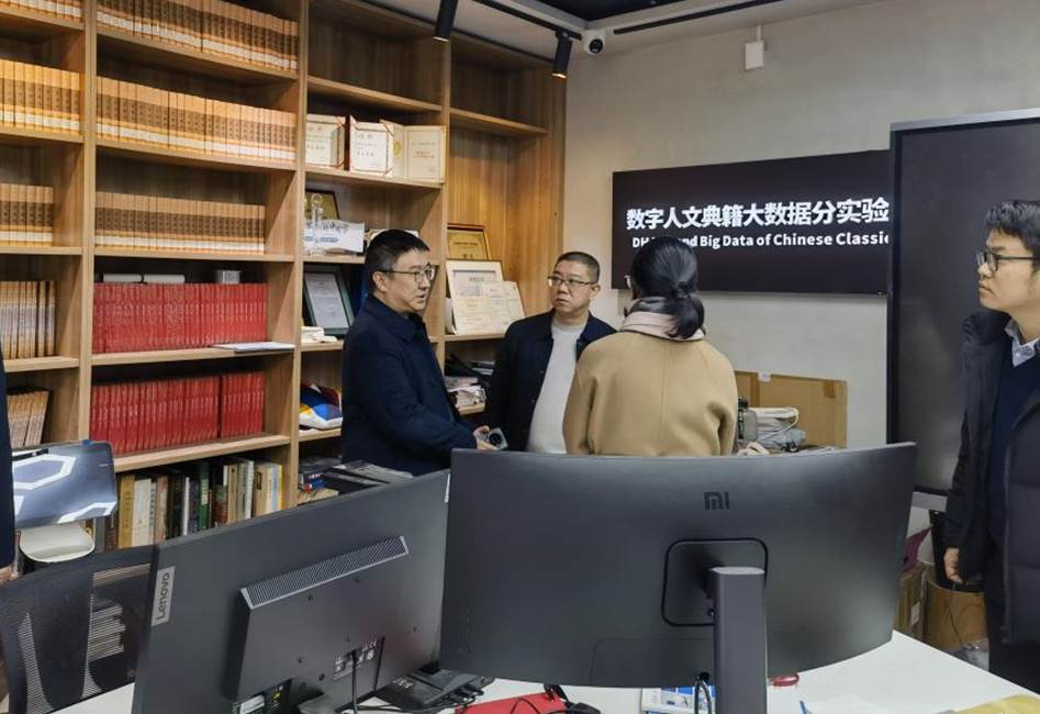 会后,温江区档案馆来访同志参观了w88win体育官网数字人文典籍大数据分实验室、数字文学场景沉浸实验分实验室、数字多模态符号认知分实验室,深入了解了w88win体育官网数字人文研究等方面的新动态。在参观中国新诗百年珍稀文献展过程中,双方就珍贵文献资源保护、利用等进行了交流。