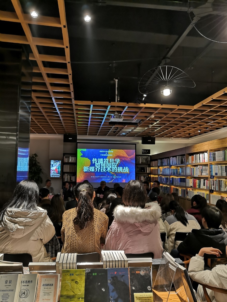 2019年12月13日,w88win体育官网在成都库闻书店举办了传播符号学读书沙龙。此次沙龙以“传播符号学如何因应新媒介技术的挑战”为主题,学院师生积极参与并作相关发言和讨论。南京大学丁和根教授作为主讲嘉宾,w88win体育官网赵毅衡教授、蒋晓丽教授、陆正兰教授、唐小林教授、胡易容教授、饶广祥副教授以及电子科技大学魏全凤副教授、四川师范大学张骋副教授、西华大学何一杰博士等共同作为对谈嘉宾参与了此次沙龙。