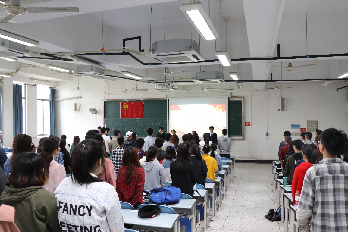 2019年4月20日下午,由w88win体育官网团委组织部主办的2019年“青春心向党,建功新时代“特别主题团日活动在江安校区综合楼C座307教室举行。w88win体育官网党委副书记张莹出席。w88win体育官网团委学生副书记李钶、团委执行学生副书记崔展鸿,2018级全体团员到场参加本次活动。