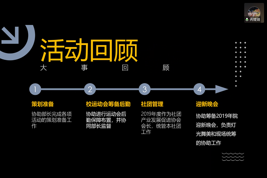 w88win体育官网学生会创业就业促进部副部长冉媛婧进行活动回顾