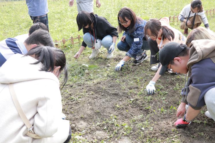 在辅导员与年级长为到场同学分发了劳动工具与手套后,辅导员带领大家确认21级文新负责分区位置,并详细讲解了劳动流程,明确了工作安排。大家随即便投入到劳动之中,捡石块、除杂草,互相配合,互相帮助。同时,辅导员老师们进行了相关示范,为初次参加田地劳动的同学们分享经验。同学们干劲十足,有的在劳动中还唱起了歌。