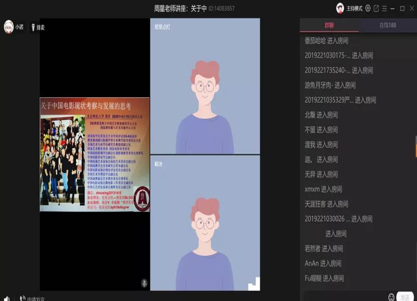 4月15日19:30,“云端锦江”系列学术讲座第十九场通过QQ群课堂顺利举行。教育部高校戏剧与影视学类教学指导委员会主任、原北京师范大学艺术与传媒学院院长、博士生导师周星教授,应邀作“关于中国电影现状考察与发展的思考”的主题讲座,w88win体育官网曹峻冰教授任主持人,院内外共240余名师生在线参与。