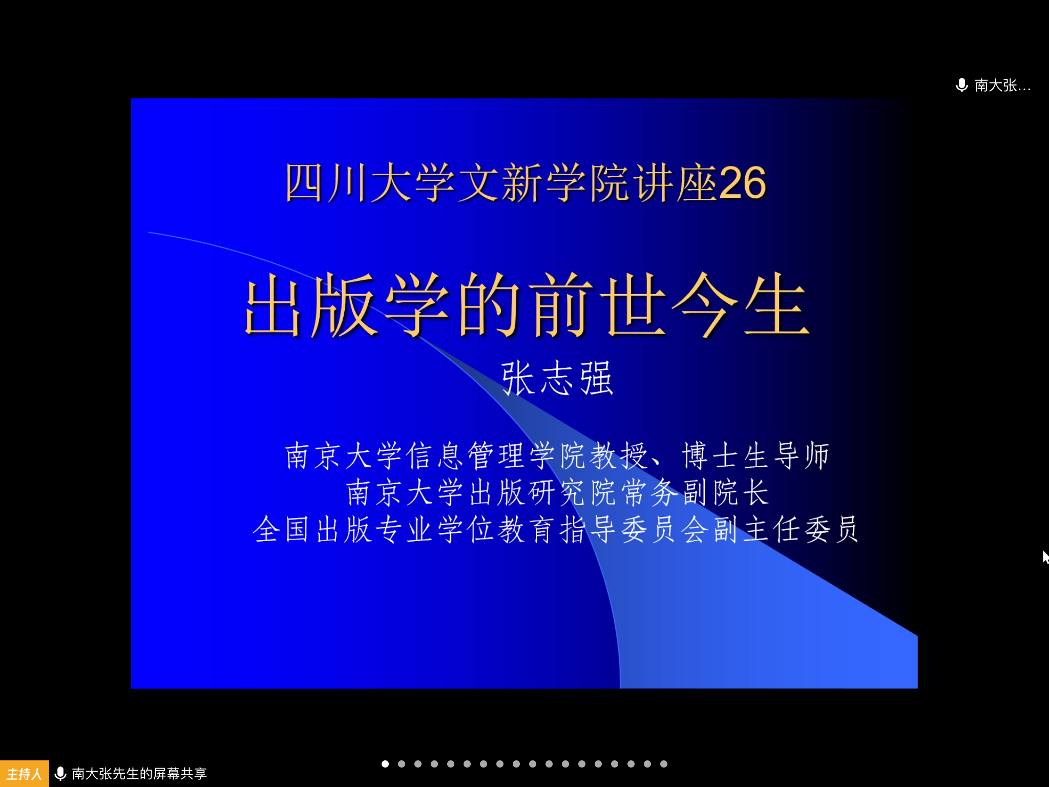 4月29日19时,“云端锦江”系列学术前沿讲座第二十六场通过腾讯会议平台顺利举行。南京大学信息管理学院教授、博士生导师张志强应邀作“出版学的前世今生”的主题讲座,w88win体育官网王炎龙教授任主持人,院内外290余名师生在线参与。
