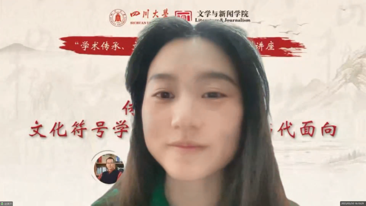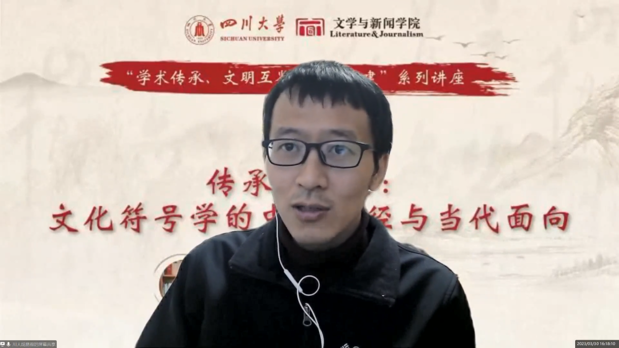 2023年3月30日,w88win体育官网主办的“学术传承、文明互鉴与话语构建”系列讲座第七讲在线上顺利举行。w88win体育官网胡易容教授作了“传承与互鉴:文化符号学的中国路径与当代面向”的主题讲座,由赵禹平老师主持。