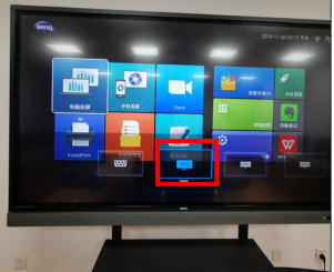 2.首页用遥控器按下最上面的信源键,选择OPS,进入一体机自带的电脑系统。