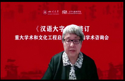中国语言学会会长、中国社科院语言研究所张伯江教授深情地回顾了中国语言学会首任会长吕叔湘先生与《汉语大字典》的情感和缘分。他认为由川大牵头搭建学术平台,组织全国学术力量攻坚克难,开展《汉语大字典》修订重大工程,是新时代文化建设赋予川大的光荣使命,是推动学科建设、缔造传世精品的难得契机。同时对修订提出如下建议:一是编写高水平的修订手册是辞书学术水平的保证。二是工具书应学术至上,在电子技术的基础上发挥研究人员的分析与甄别能力。三是在组织架构方面,既要发挥高校教师团队的优势,也要协调考核压力与编纂任务之间的矛盾,以科研带动研究、以研究促进修订。