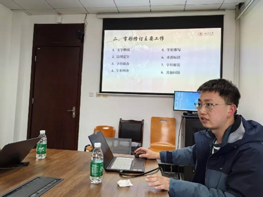 2025329日,《汉语大字典》修订课题组召开古文字修订专题例会。滕胜霖老师介绍了课题组过去两年的修订进度和本年度的基本规划。